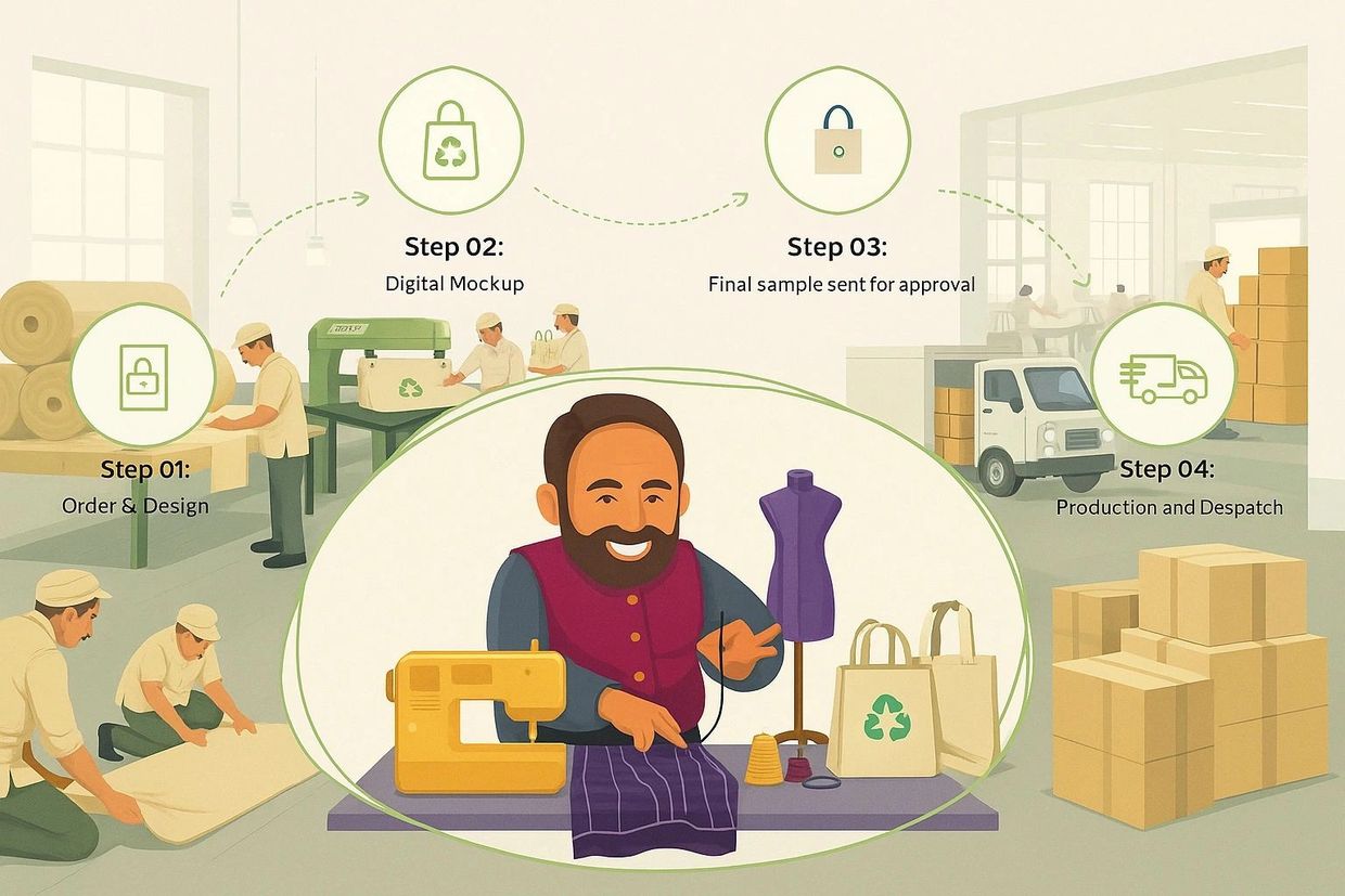 At R.S. Stiching & Bags Co., we believe sustainability and style can go hand in hand. Our mission is to manufacture eco-friendly tote bags that not only look fashionable but also make a positive difference for our planet. Every bag we craft is made with premium, responsibly sourced materials and produced through ethical, eco-conscious processes. From design to dispatch, we ensure top-notch quality, durability, and attention to detail — so you get a product that’s made to last and feel good about using. We’re proud to support fair labor practices and maintain complete transparency in everything we do. When you choose R.S. Stiching & Bags Co., you’re choosing more than just a bag — you’re joining a movement toward a cleaner, greener, and more responsible future, supporting a brand that values quality, responsibility, and positive impact on both the environment and society.